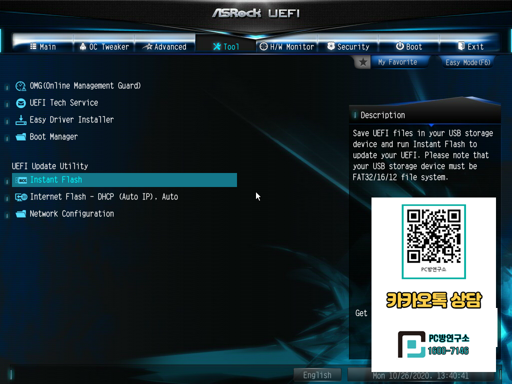 usb에 바이오스를 담아 Instant Flash 항목으로 업데이트합니다.
