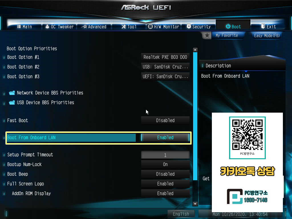 Boot From Onboard LAN 항목을 Enabled로 변경합니다.