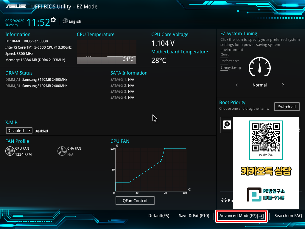 여기선 F7 눌러 Advanced Mode로 진입합니다.