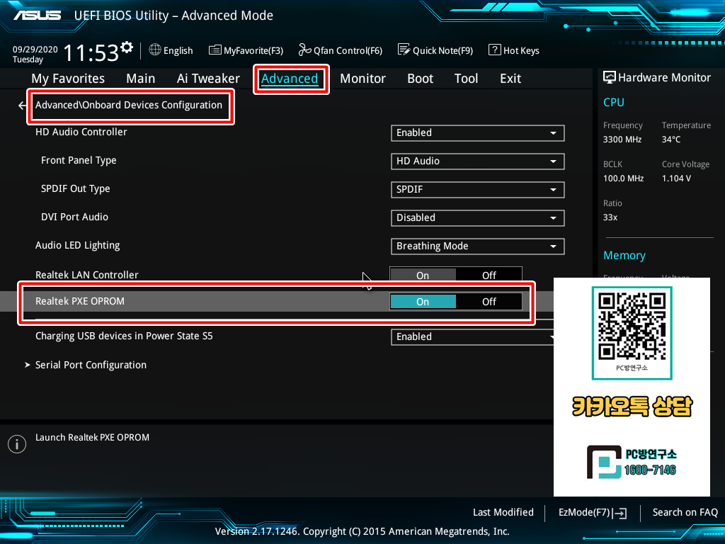 Realtek PXE OPROM 항목을 On으로 변경하시면 됩니다.