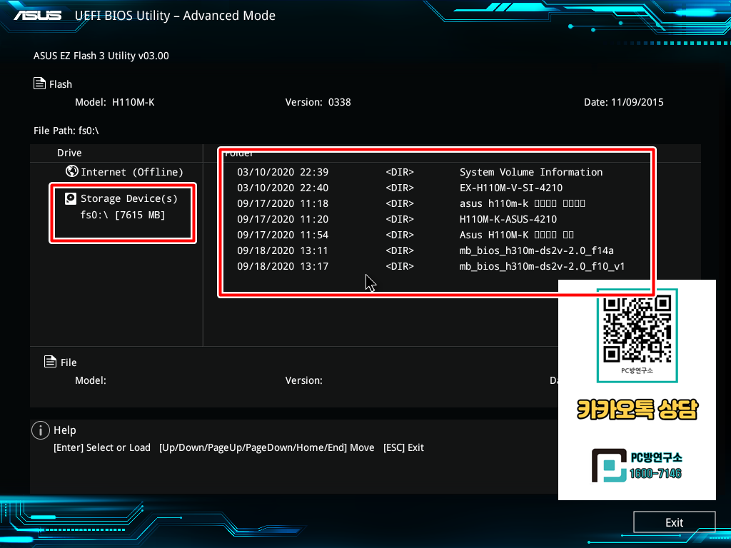 USB를 선택하고 우측에서 보드에 맞는 바이오스 롬을 선택합니다.