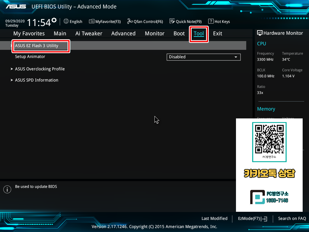 ASUS EZ Flash 3 Utility 항목을 선택합니다.
