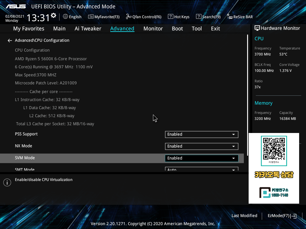 SVM Mode를 Enabled(활성화) 해줍니다.