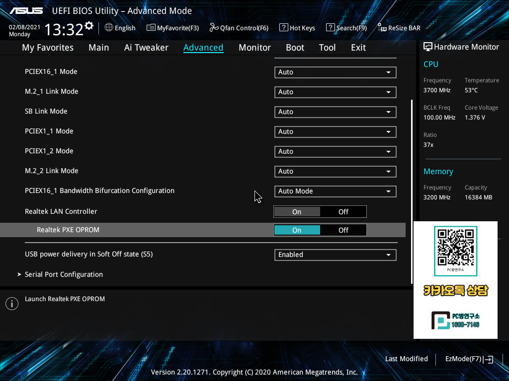 Realtek PXE OPROM을 On으로 변경해줍니다.